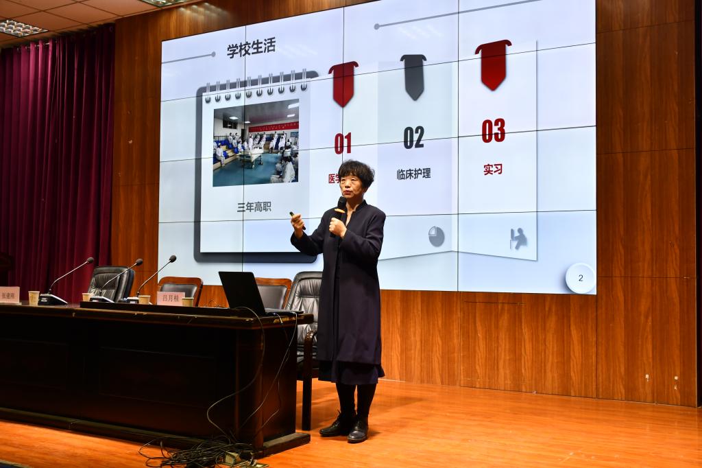 最后,太阳成集团tyc151cc教管办吕月桂主任从护理人才培养方案讲起,深入浅出、生动形象地向大家介绍了护理学科的现状、护理专业的发展趋势和护士的职业发展方向,并现场为同学们答疑解惑。