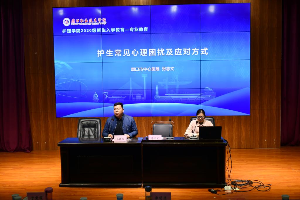 周口市中心医院主治医师张志文以“护生常见的心理困扰及应对方式”为题开始了首场讲座。她针对当前大学护生常见的心理问题分析了原因,并提出了有效的解决方案。