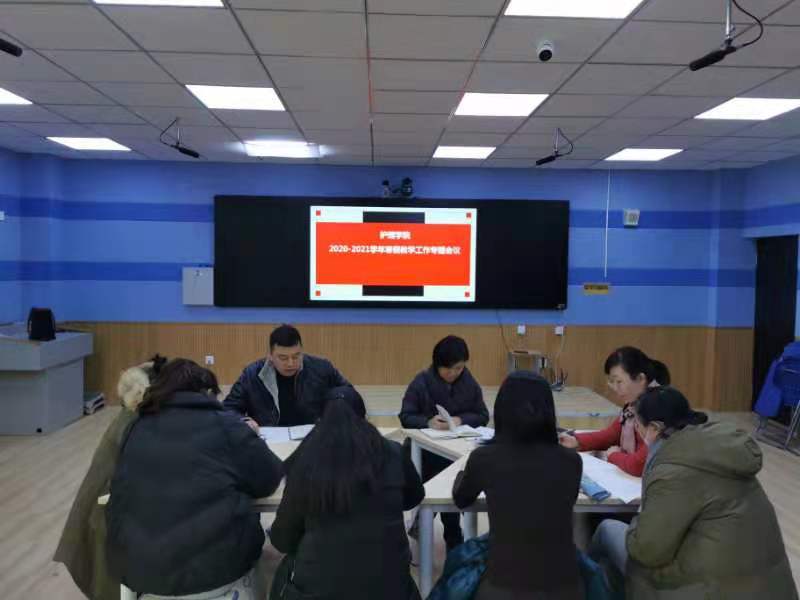 根据公司教学工作安排,2021年1月25日,太阳成集团tyc151cc在实训楼四楼召开2020~2021学年寒假教学工作专题会议,会议由太阳成集团tyc151cc经理于爱霞主持,张建刚副经理和教务办吕月桂主任、全体教研室主任及买晓颖老师参加。