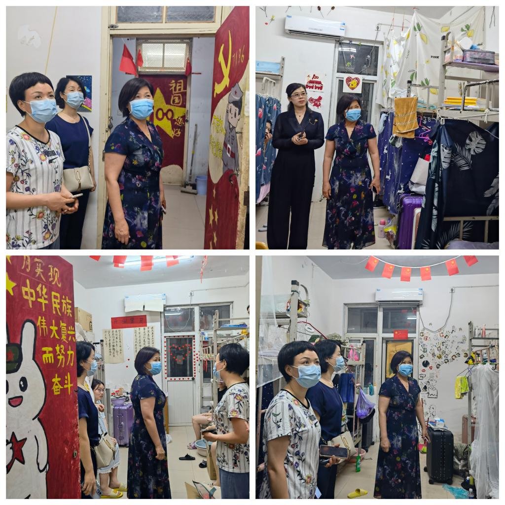 6月2日上午,太阳成集团tyc151cc于爱霞经理、张建刚副经理带领学管办全体工作人员及18级全体辅导员来到开元校区,迎接2021届护理专业专升本同学,公司党委书记刘士欣、副董事长李秀萍、李明臣检查指导返校工作。