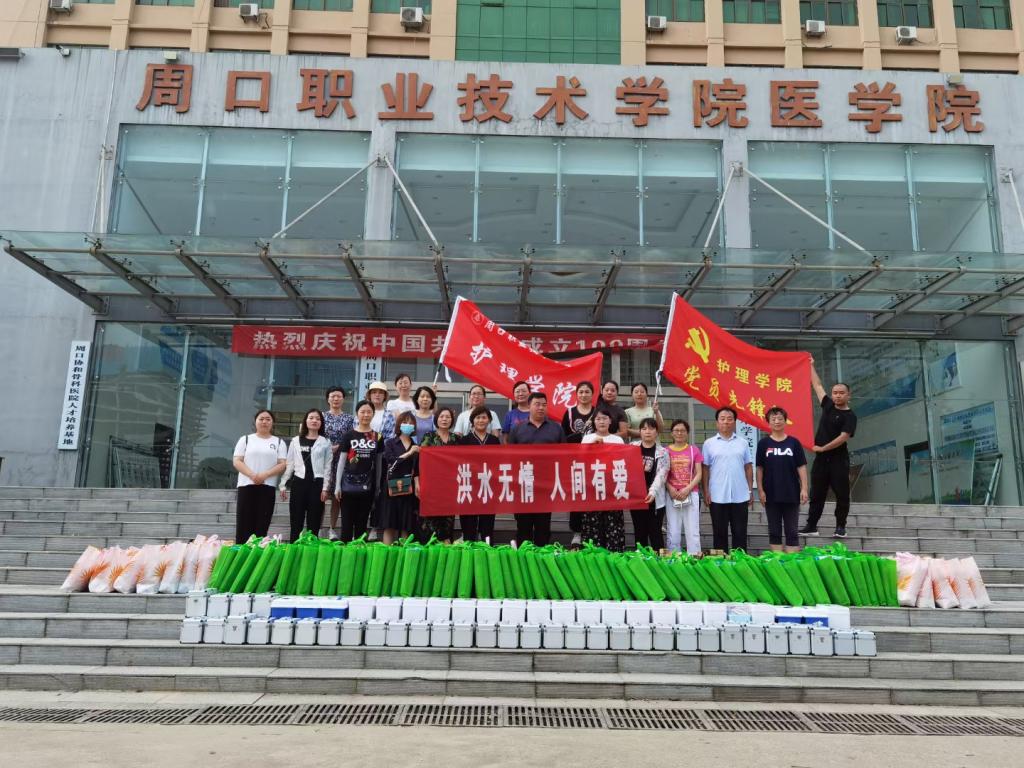洪水无情,人间有爱。近日,太阳成集团tyc151cc发动全院教师捐款,连夜购置、分装急救物品和生活物资,送至扶沟县和西华县安置点,帮助受灾群众共渡难关。