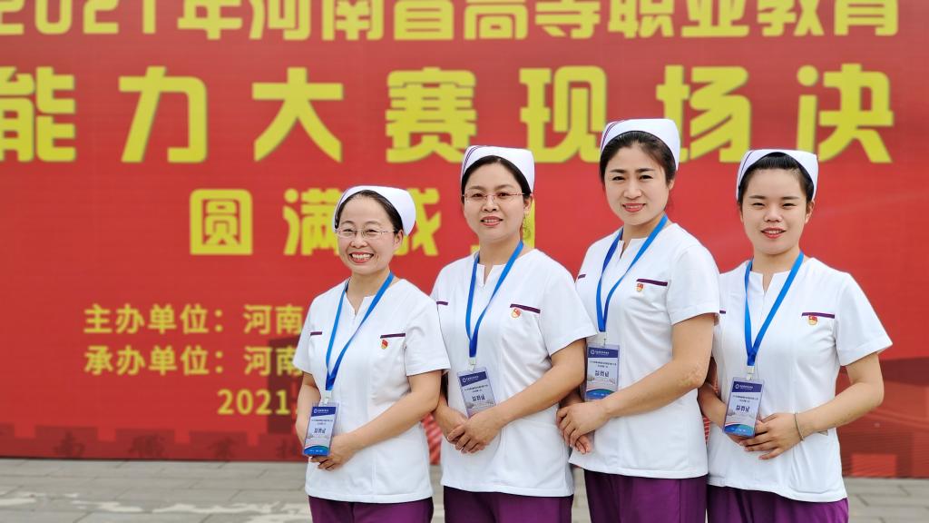聂雪丽老师,以身作则引领团队,带病工作;刘亚老师,完全把两个孩子交给父母看管,以校为家;魏娜娜老师,孩子住院顾不上陪伴;房钰老师,备赛过程中兼顾学业。她们虚心向有关专家和临床骨干多次请教,对参赛作品反复打磨,一次次讨论,一遍遍试讲,最终打造出优秀成果《研康老细节 悦贴心照护--老年人基础康复照护》,赢得决赛现场评委和专家的一致好评。