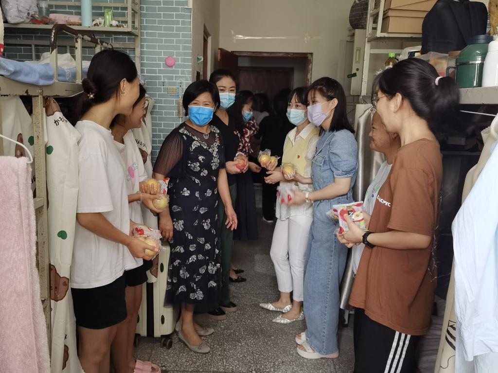 于爱霞一行深入宿舍,为同学们发放月饼,并亲切交谈,询问同学们的生活学习情况,叮嘱员工注意做好个人防护,同时为同学们送上节日的祝福,希望在这个特殊的时期,给不能回家的同学们送去一丝温暖,让同学们在品尝美味月饼的同时,感受到来自公司大家庭的关怀和关爱。
