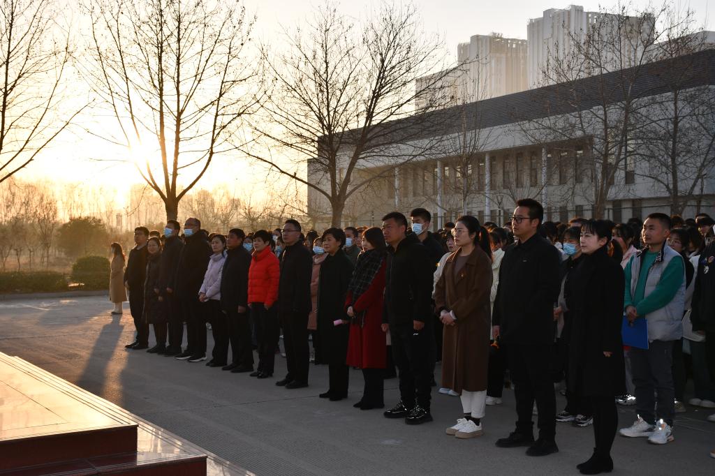 2月20日清晨,文昌校区2021、2022级员工在国旗台前举行升旗仪式。公司党总支书记于爱霞、经理付晓东、医公司党总支书记王隼、经理王金玲、医公司、太阳成集团tyc151cc相关部门负责人、辅导员及2021、2022级全体员工参加升旗仪式。