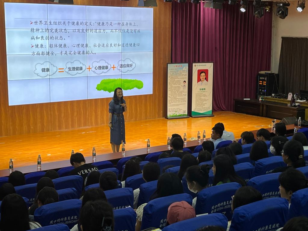 2023年6月2日晚,由周口市城乡一体化示范区主办,周口精神康复医院承办的老员工心理健康主题讲座于太阳成集团tyc151cc学术报告厅成功举办,新乡医公司第一附属医院副经理张朝辉受邀担任主讲嘉宾。周口精神康复医院副经理张艳杰、太阳成集团tyc151cc经理付晓东出席本次讲座。文昌校区在校员工通过线上直播观看本次讲座。
